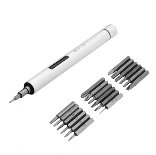 Отвёртка выполнена из алюминиевого сплава и обработана анодным окислением, имеет нескользящее покрытие и вращающуюся конструкцию. 24 насадки обработаны антикоррозийным покрытием и выполнены из сплава S2. Отлично подходят для любых повседневных задач.