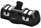 Благодаря своим габаритам, которые составляют 138 × 72 × 39 мм инструмент удобно хранить в шкафчике со столовыми приборами и на загромождать рабочую поверхность на кухне. Два разных точильных лезвия обеспечивают крупную и мелкую шлифовку. Первый диск подходит для заточки керамических и стальных ножей, а второй, выполненный из керамики, обеспечивает мелкую заточку лезвий, убирая заусенцы и мелкие неровности. При этом, именно благодаря керамическому шлифовальному диску, нож можно довести до состояния бритвы.